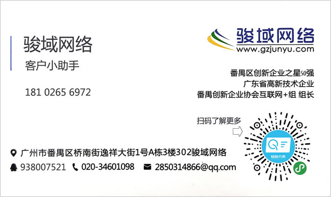 廣州駿域網(wǎng)絡(luò)科技有限公司成立于2005年,是一支由眾多具有多年實(shí)踐經(jīng)驗(yàn)的專(zhuān)業(yè)人士組成的高新技術(shù)團(tuán)隊(duì),專(zhuān)為企業(yè)提供網(wǎng)站建設(shè)、全網(wǎng)營(yíng)銷(xiāo)、郵箱等服務(wù),我們擁有嚴(yán)謹(jǐn)?shù)某绦蜷_(kāi)發(fā)人員、專(zhuān)業(yè)的美工設(shè)計(jì)、隨時(shí)為您效勞的售后服務(wù)人員,團(tuán)隊(duì)人數(shù)達(dá)一百多人。目前我們已經(jīng)榮幸的為廣州眾多知名企業(yè)提供了包括網(wǎng)站建設(shè)、手機(jī)網(wǎng)站、小程序、企業(yè)軟件開(kāi)發(fā)等多種基于互聯(lián)網(wǎng)技術(shù)的服務(wù)。 通過(guò)長(zhǎng)期積累,駿域網(wǎng)絡(luò)目前已經(jīng)擁有50000多家客戶(hù)。